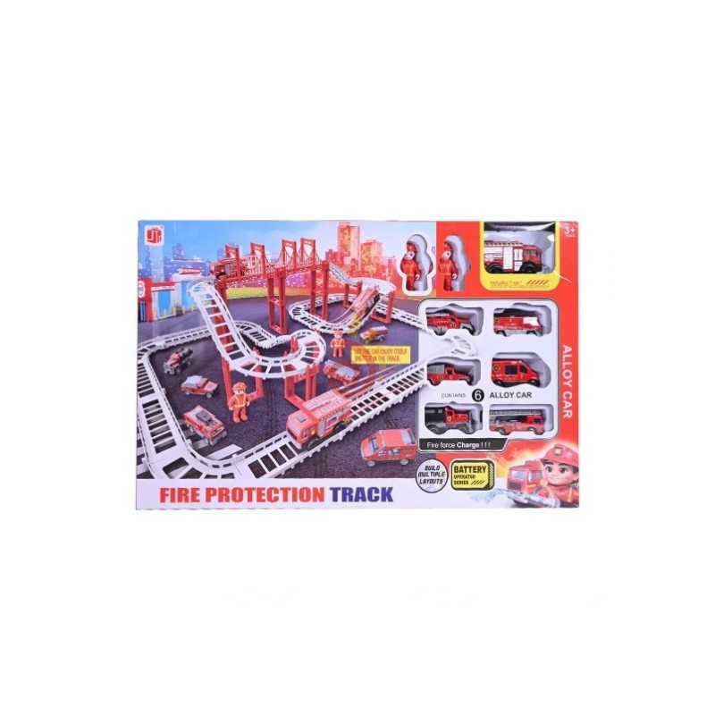 Տղաների խաղալիք խաղային ավտոճանապարհ հրշեջ: Հավաքածուն իր մեջ ներառում է 7 մեքենա: