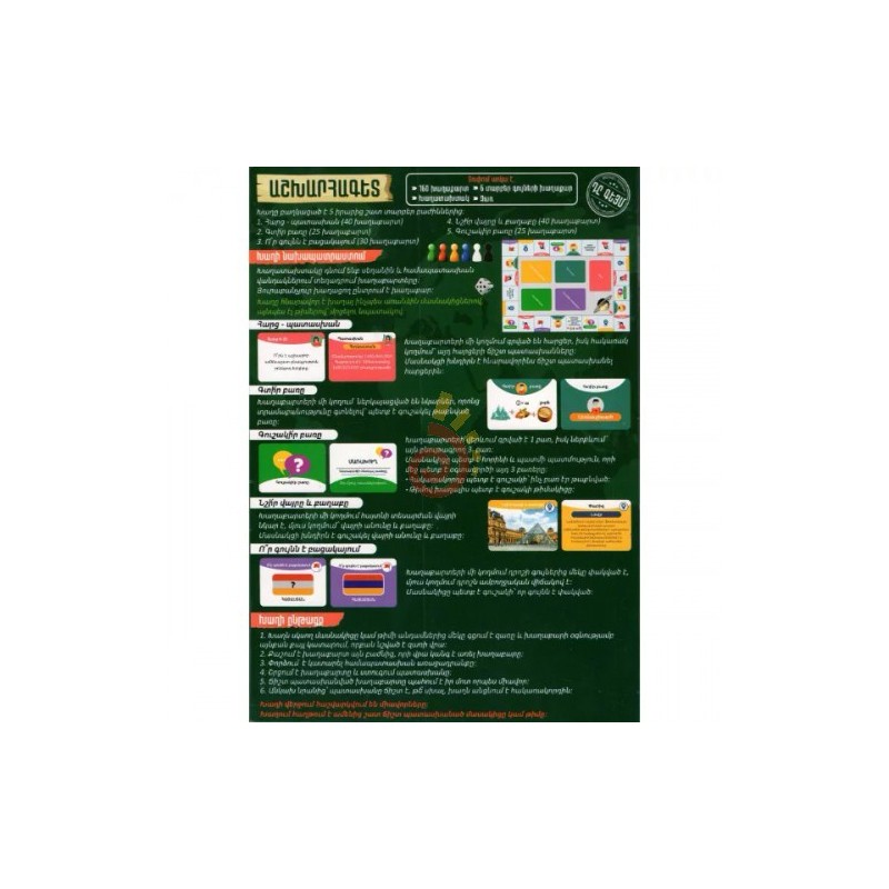 Խաղը հնարավոր է խաղալ 2 մասնակցով կամ 2 թիմով: → Խաղաքարտերը՝ առանձնացված բարդության մակարդակներով, հարցի կողմով դրվում են սեղանին: